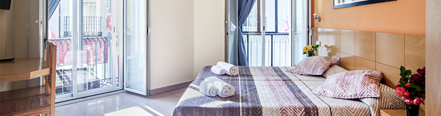 En Hostal Inter Puerta del Sol contamos con acogedoras y cC3modas habitaciones en pleno centro de Madrid que ofrecen una atmC3sfera cC!lida y acogedora. Un total de 29 habitaciones que disponen de televisiC3n con canales internacionales, telC)fono, calefacciC3n b aire acondicionado individual, armario y escritorio.